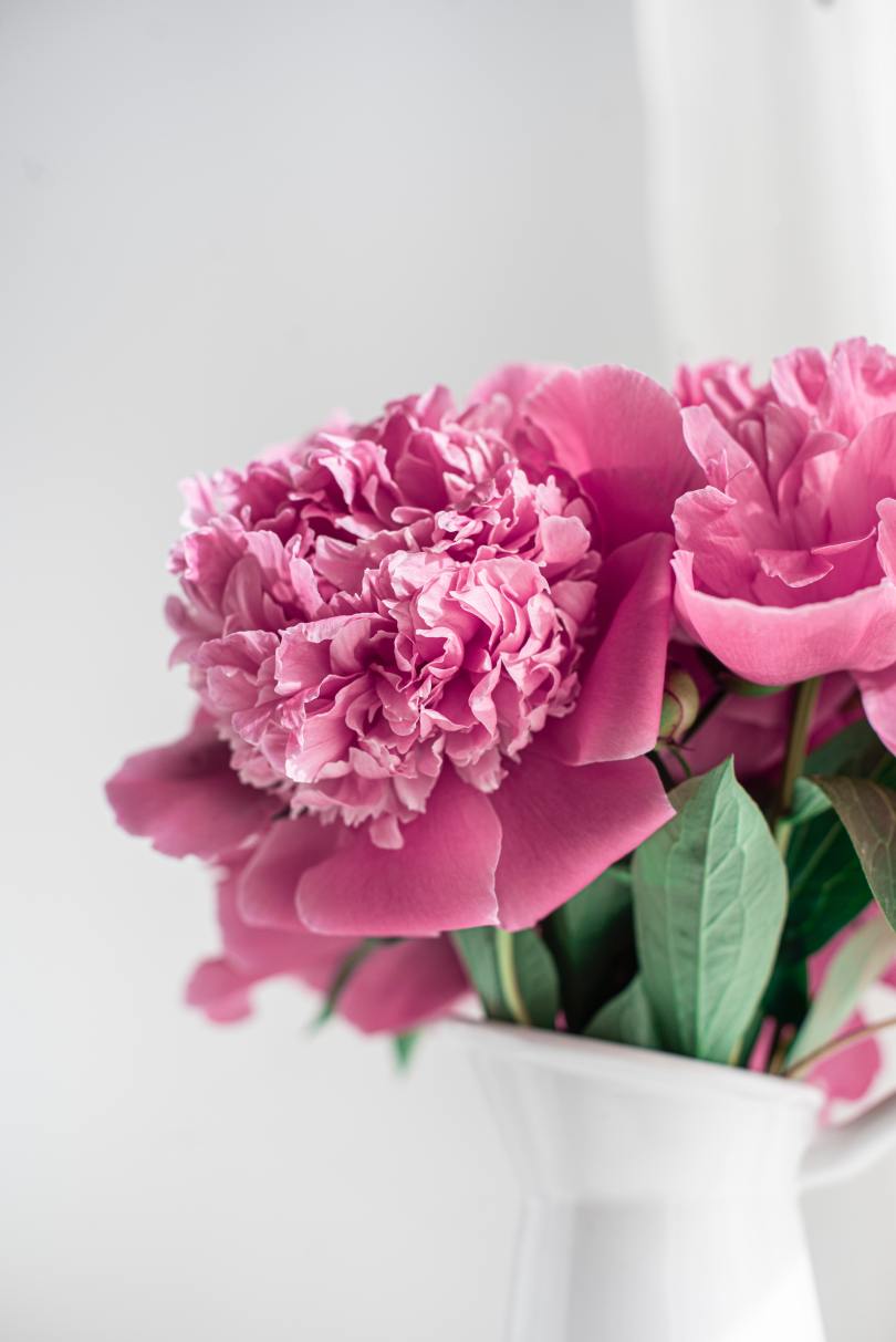 Qui, sul tavolo, vicino alla finestra c’è un vaso di peonie