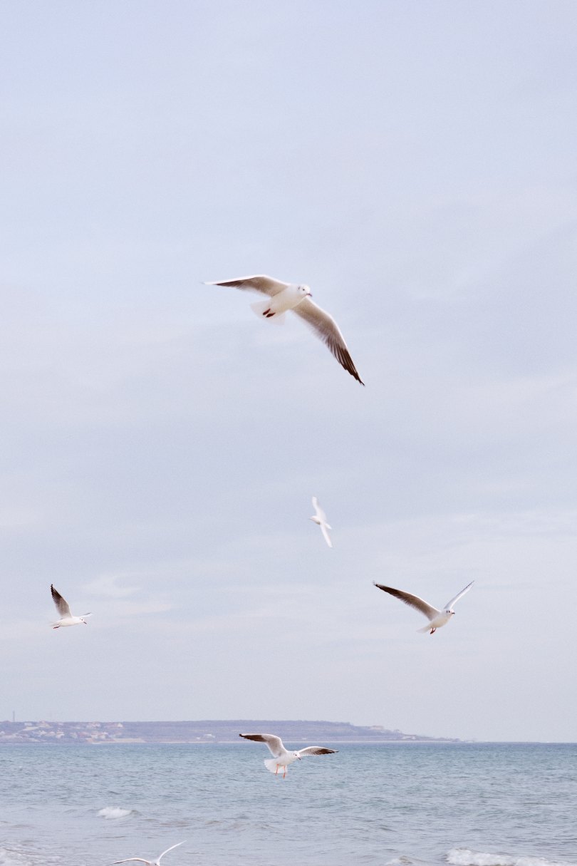 i gabbiani che volteggiavano sulla spiaggia bianca
