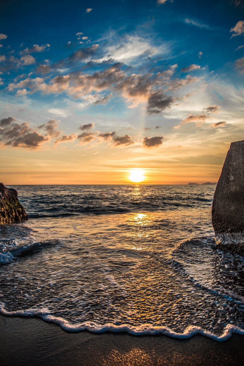 La roccia precipita e sopra lei l’ondata:
